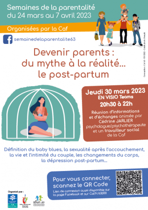Jeudi 30 mars à 20h30. Scannez le QR code pour vous connecter et lien de connexion sur caf.fr/63000.